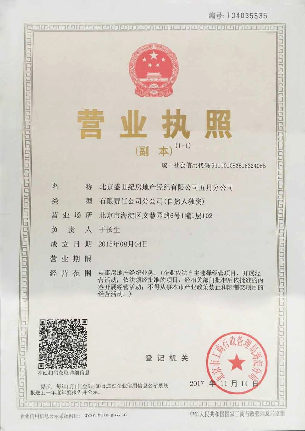 北京盛世紀房地產經紀有限公司成立于2009年5月,致力于商品房銷售代理、存量房轉讓經紀、房屋租賃經紀等業務的經營。在大浪淘沙的行業大環境中保持穩健的發展,目前在北京市擁有了多家直營門店,幾十組服務團隊;并且公司相繼于2014年、2015年、2016年先后成立北京中友明昊會計有限公司、北京晟世紀房地產經紀有限公司及赤峰盛世紀房地產經紀有限公司。    北京盛世紀房地產經紀有限公司自成立以來一直秉持“立業以人,為業以信”的價值理念,堅持以客戶需求為工作導向,以建立互信的客戶關系為工作目標,以保障客戶權益為工作使...